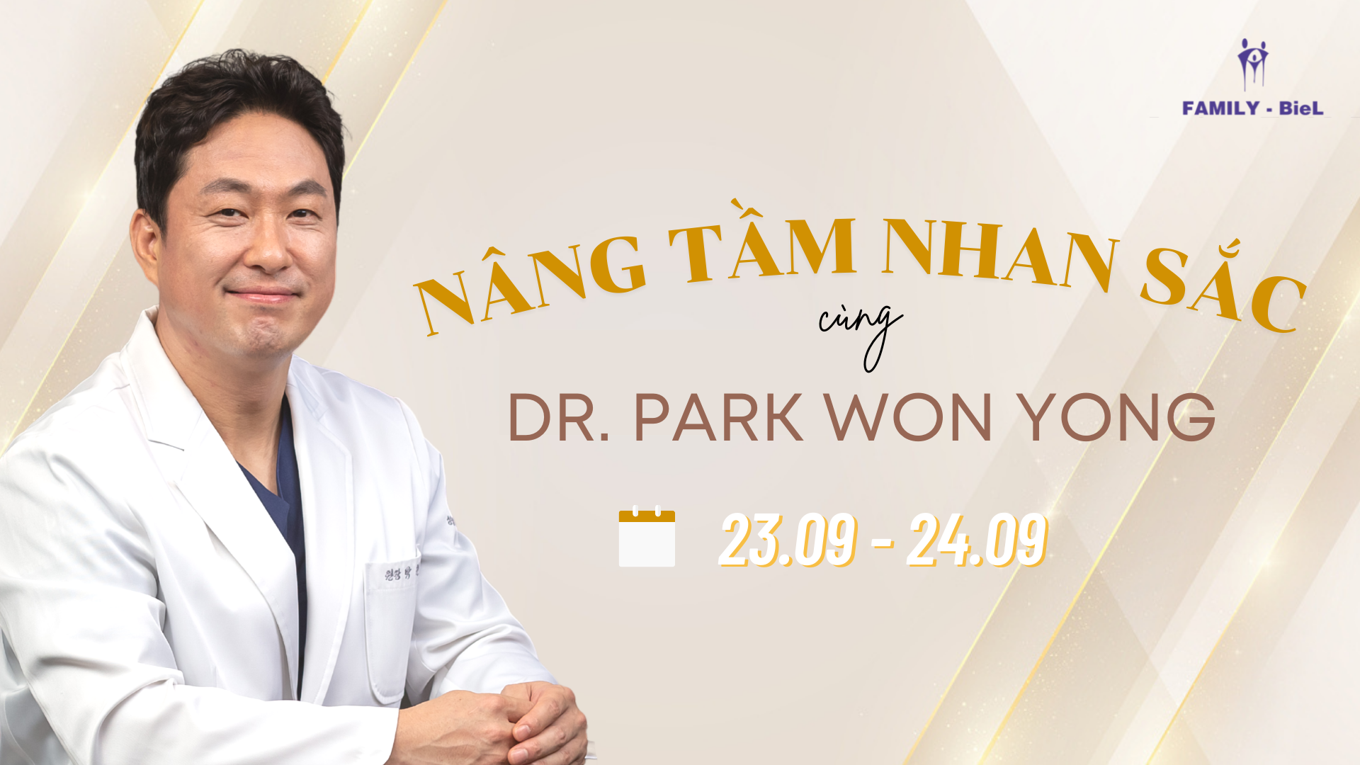 Dr. Park Won Yong – Viện trưởng Viện thẩm mỹ BL Hàn Quốc, sẽ đến Family BieL chỉ trong 02 ngày duy nhất 23 – 24.09 và đây cũng là đợt ghé thăm cuối cùng trong năm 2022 này của bác sỹ được mệnh danh là “bàn tay vàng” phẫu thuật thẩm mỹ mũi – mắt.
